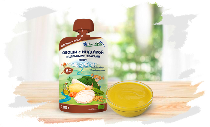 Բանջարեղենի, դիետիկ մսի կամ ձկան և ամբողջական հացահատիկների յուրահատուկ համադրությունը կսիրվի փոքրիկի կողմից։ Պյուրեն ունի նուրբ, հավասարակշռված համ, որի մեջ լավ զգացվում են և՛ բանջարեղենը, և՛ միսը։ Այն ունի օպտիմալ՝ չափավոր խտություն և մաքուր բաղադրություն։
